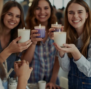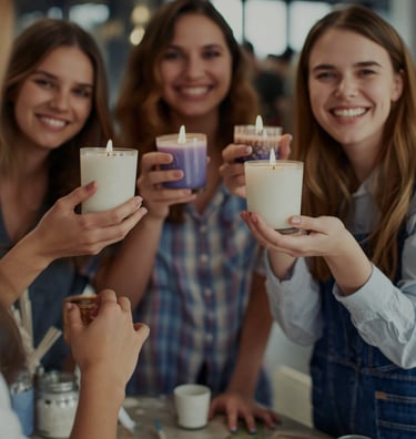 Candle-making from start to finish Color & fragrance selection Optional intention or theme integration Relaxed social interaction throughout